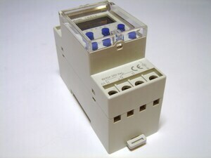 16(10)A 250V, nädalakell 1 kanal, kontaktid: 1 NO/NC, DIN-liistu kinnitus, 45 x 35 x 60 mm (2 moodulit), töötemperatuur –10...+50°C.