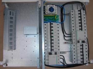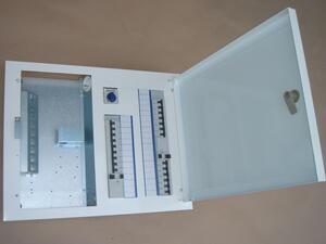 metall korpus, laius 565 mm, kõrgus 455 mm, sügavus 90 mm(uputatav 60 mm), uksega, 36 moodulit, tolmu ja niiskusekaitse IP20. Kilbi sisse paigaldatud: pealüliti 4 poolust 40A.(Ensto, KS3.40) - 1 tk, 1-faasilised moodulkaitselülitid(General Electric) C10A. - 7 tk, 1-faasilised moodulkaitselülitid(General Electric) B16A. - 6 tk, 1-faasilised moodulkaitselülitid(General Electric) C16A. - 9 tk, 3-faasiline rikkevoolukaitse(Schneider Electric) 40A. 30 mA. - 2 tk, null-maanduslatt.