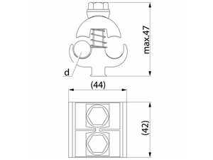 Al 16-120 мм². Если купишь коробку (50 шт.) или больше, цена 2 €/шт, если меньше то 2,5 €/шт. SL4.25 зачищен и обработаны смазкой антиоксидантом, таким образом только проводник требует зачистки и обработки. SL 4.25 оснащен пружинами. Зажим оснащен двумя болтами M8. Благодаря верхней разрезанной планке, с помощью зажимов SL 4.25 можно соединить магистральный провод с двумя ответвительными проводами разного сечения.