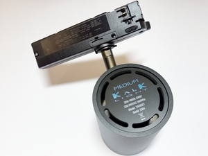 220-240В, черный алюминиевый корпус, для установки на рельсе, вместе с трансформатором, цвет свечения холодный белый(4000°К, CRI97), размер светильника Ø90x120 мм, пыле и влагозащита IP20.