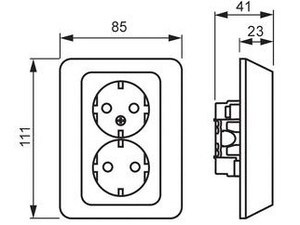111x85x23 мм, 2P+E,16A /~250В, белая, с заземлением, клеммы с винтовым зажимом, с детской защитой.