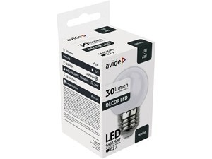 Светодиодная лампа 1Вт=6Вт, E27, Avide, ABDLG45-1W-W